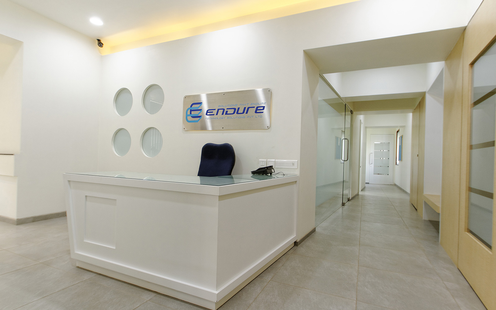 An officespacemeasuring 6000 square feet split into two wings of an office building. The brief for this space included the designing of the reception, board and conference rooms...